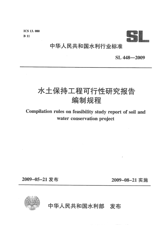 标准介绍:SL 448-2009 水土保持工程可行性研究报告编制规程