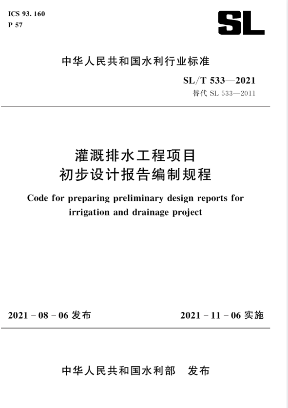 标准介绍:SL/T 533-2021 灌溉排水工程项目初步设计报告编制规程