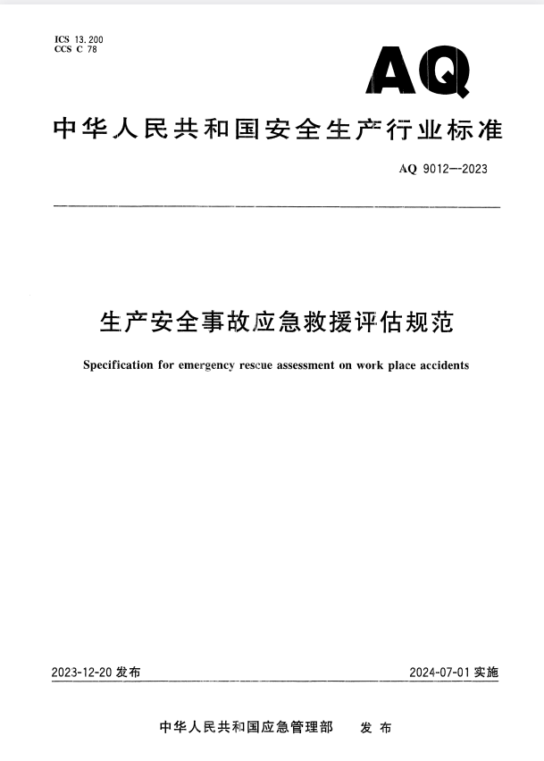 标准介绍:AQ 9012-2023 生产安全事故应急救援评估规范