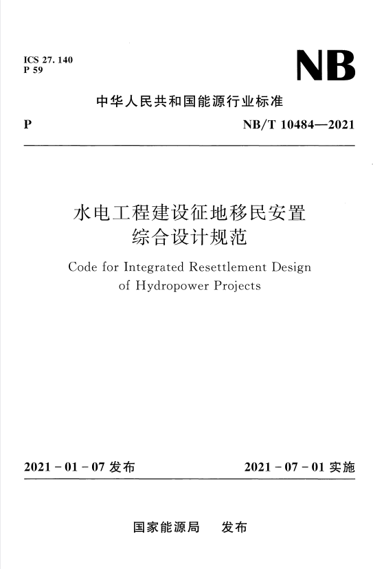 标准介绍:NB/T 10484-2021 水电工程建设征地移民安置综合设计规范