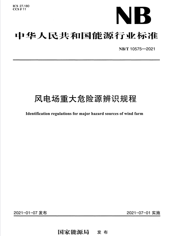 标准介绍:NB/T 10575-2021 风电场重大危险源辨识规程
