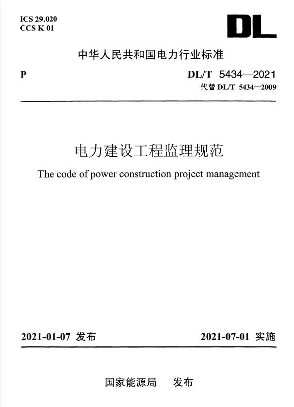 标准介绍:DL/T 5434-2021 电力建设工程监理规范