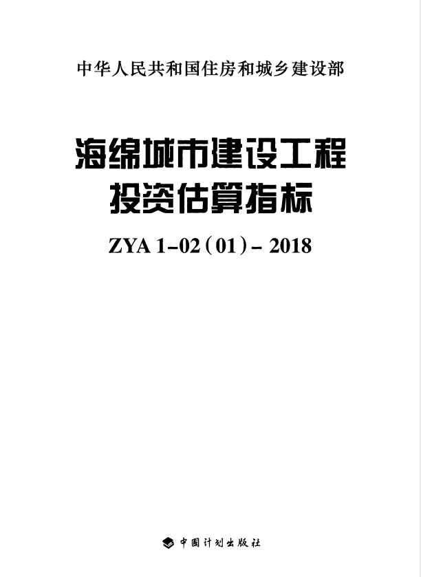 标准介绍:ZYA 1-02(01)-2018 海绵城市建设工程投资估算指标