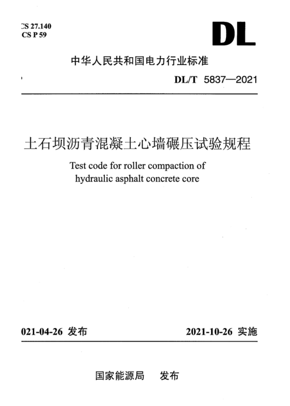 标准介绍:DL/T 5837-2021 土石坝沥青混凝土心墙碾压试验规程