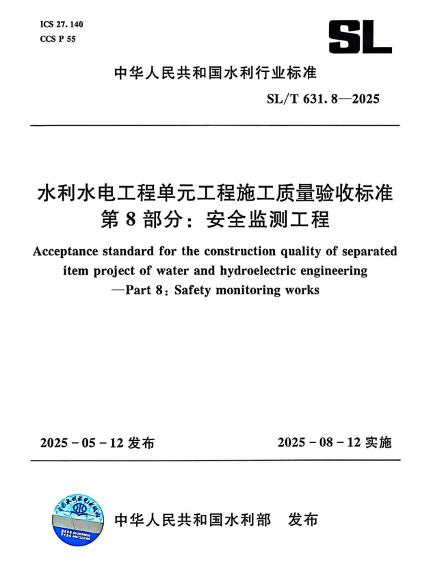 标准介绍:SL/T 631.8-2025 水利水电工程单元工程施工质量验收标准第8部分:安全监测工程