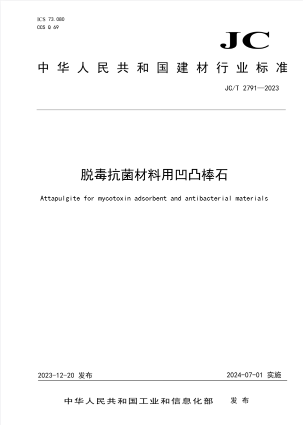 标准介绍:JC/T 2791-2023 脱毒抗菌材料用凹凸棒石