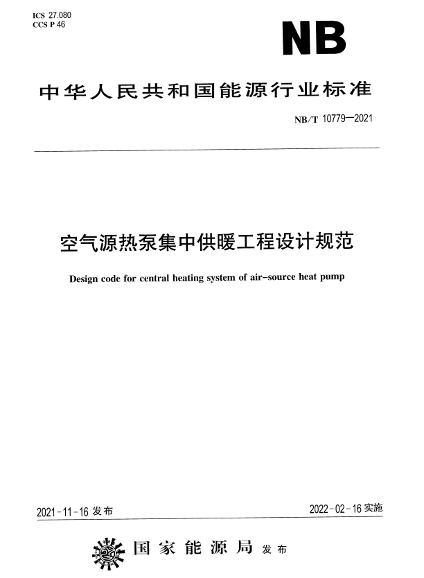 标准介绍:NB/T 10779-2021 空气源热泵集中供暖工程设计规范qXR免费标准库