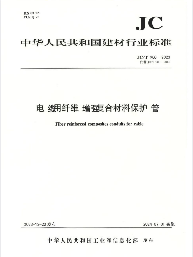 标准介绍:JC/T 988-2023 电缆用纤维增强复合材料保护管