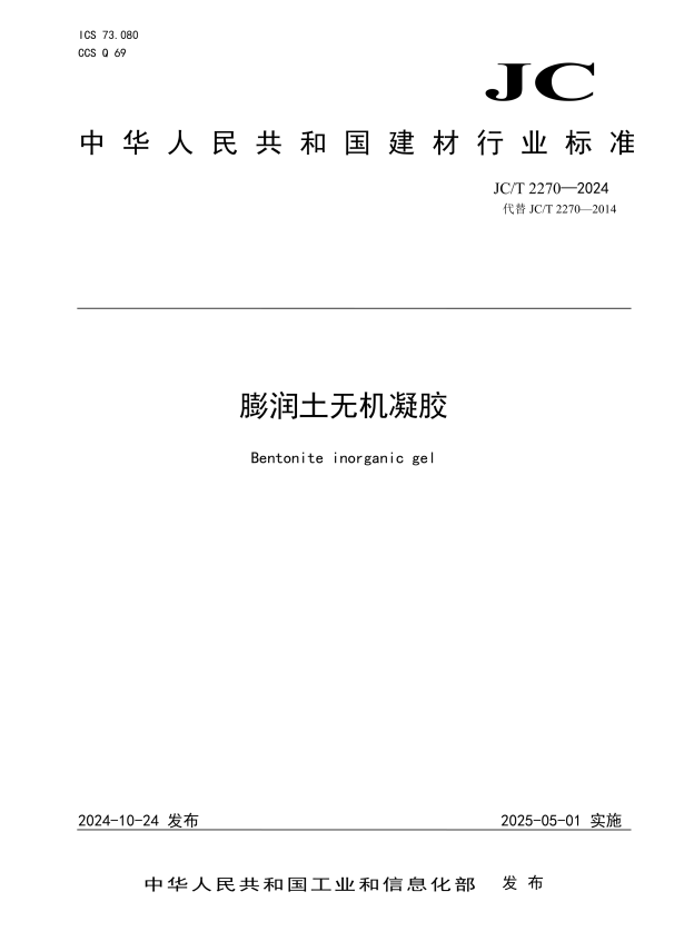 标准介绍:JC/T 2270-2024 膨润土无机凝胶