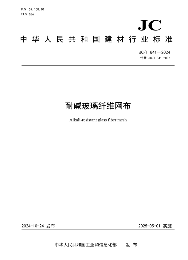标准介绍:JC/T 841-2024 耐碱玻璃纤维网布