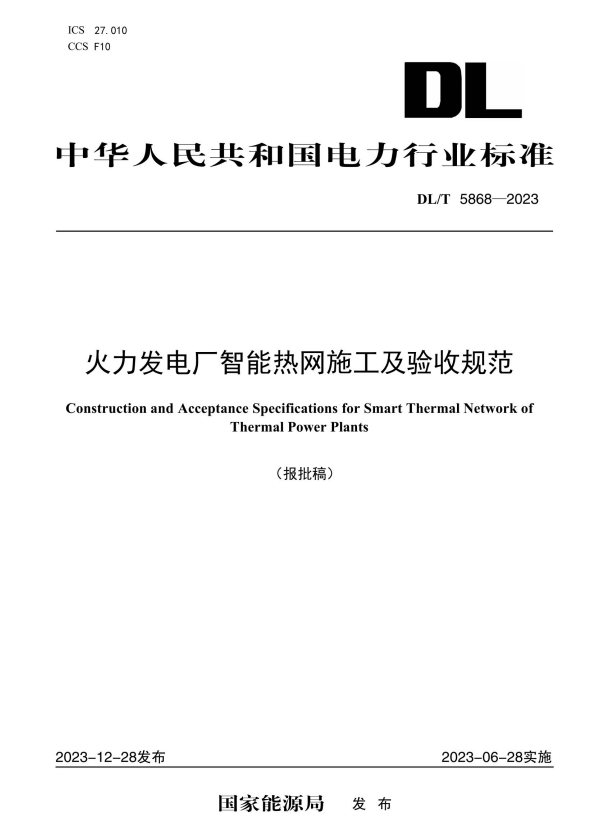 标准介绍:DL/T 5868-2023 火力发电厂智能热网施工及验收规范W5W免费标准库