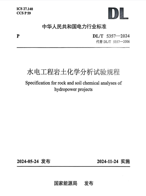 标准介绍:DL/T 5357-2024 水电工程岩土化学分析试验规程 正式版