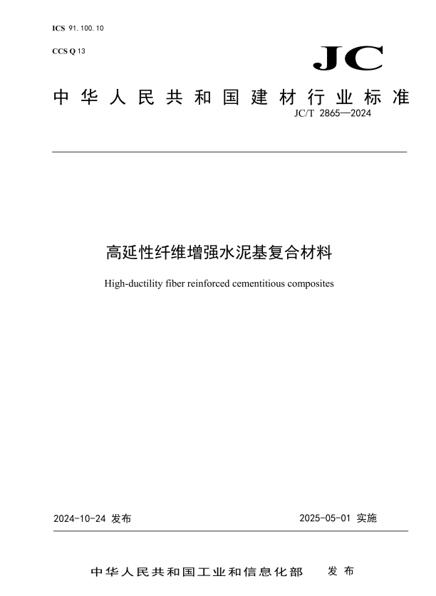 标准介绍:JC/T 2865-2024 高延性纤维增强水泥基复合材料