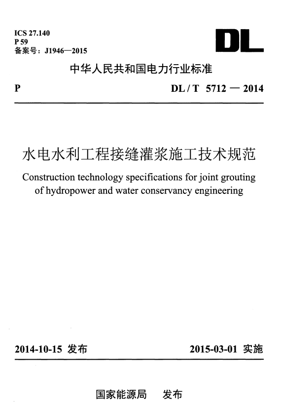 标准介绍:DL/T 5712-2014 水电水利工程接缝灌浆施工技术规范