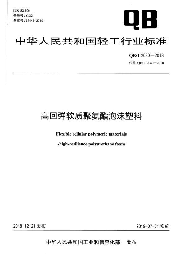 标准介绍:QB/T 2080-2018 高回弹软质聚氨酯泡沫塑料