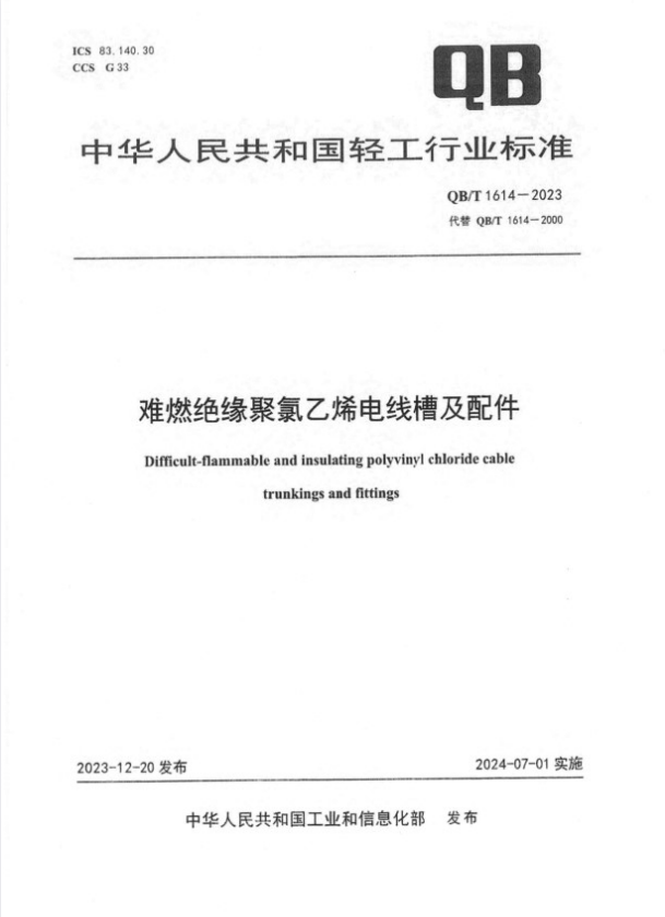 标准介绍:QB/T 1614-2023 难燃绝缘聚氯乙烯电线槽及配件