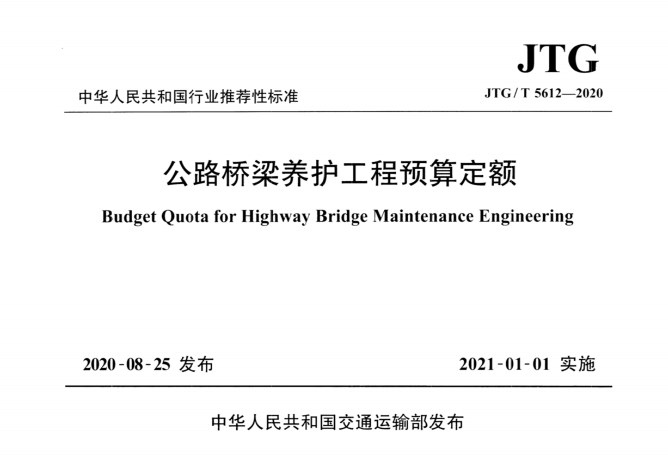 标准介绍:JTG/T 5612-2020 公路桥梁养护工程预算定额