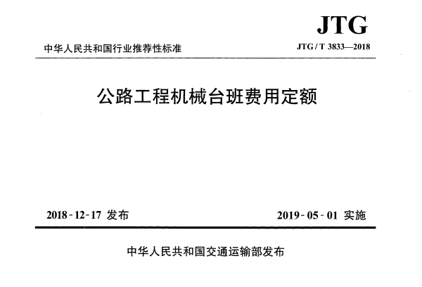 标准介绍:JTG/T 3833-2018 公路工程机械台班费用定额