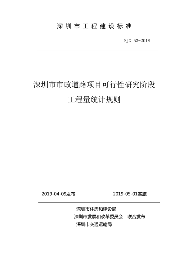 标准介绍:SJG 53-2018 深圳市市政道路项目可行性研究阶段工程量统计规则wve免费标准库