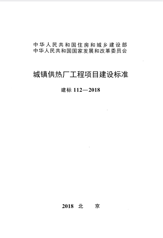 标准介绍:建标 112-2018 城镇供热厂工程项目建设标准
