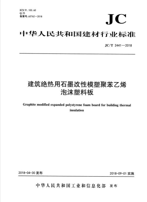 JC/T 2441-2018 建筑绝热用石墨改性模塑聚苯乙烯泡沫塑料板.pdf