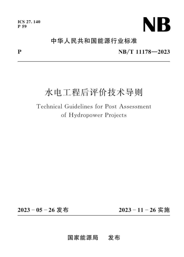 标准介绍:NB/T 11178-2023 水电工程后评价技术导则