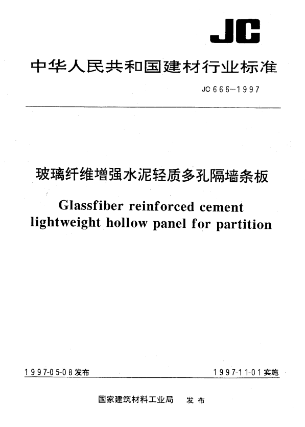 JC 666-1997 玻璃纤维增强水泥轻质多孔隔墙条板.pdfsgp免费标准库