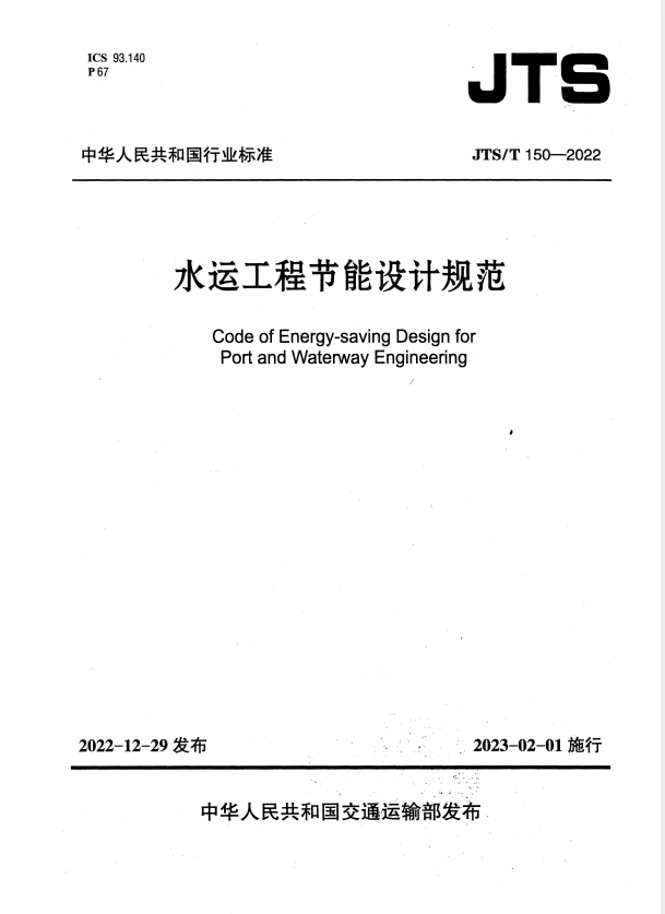 标准介绍:JTS/T 150-2022 水运工程节能设计规范acv免费标准库