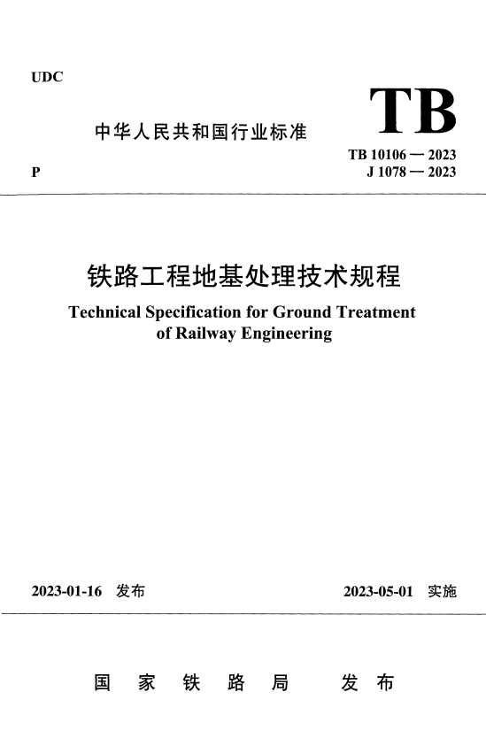 标准介绍:TB 10106-2023 铁路工程地基处理技术规程
