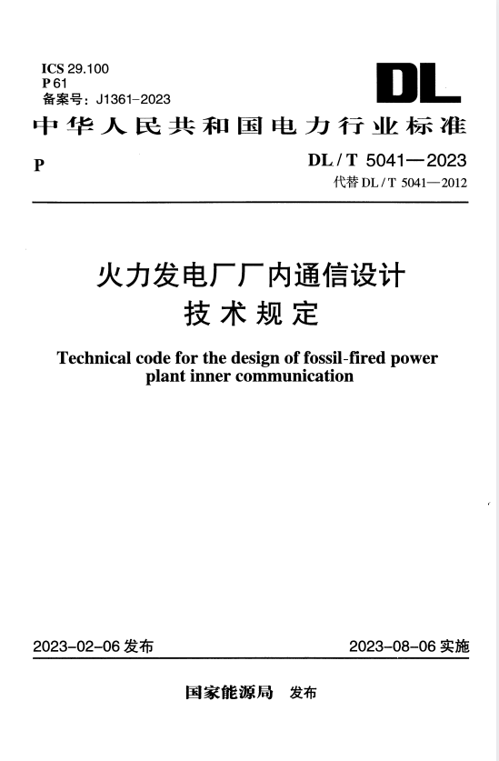 标准介绍:DL/T 5041-2023 火力发电厂厂内通信设计技术规定