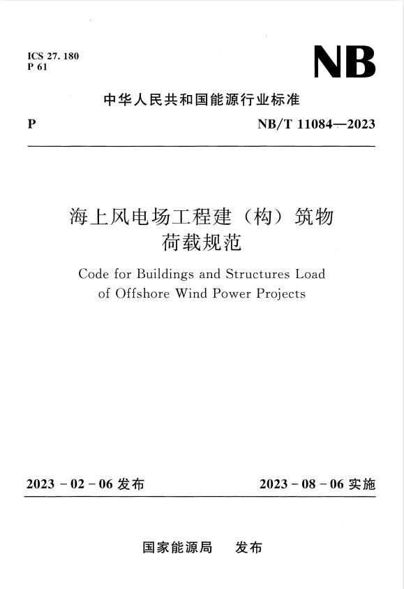 标准介绍:NB/T 11084-2023 海上风电场工程建(构)筑物荷载规范