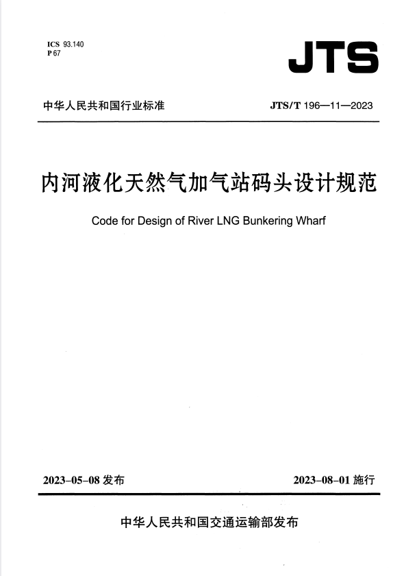 标准介绍:JTS/T 196-11-2023 内河液化天然气加气站码头设计规范Nkq免费标准库