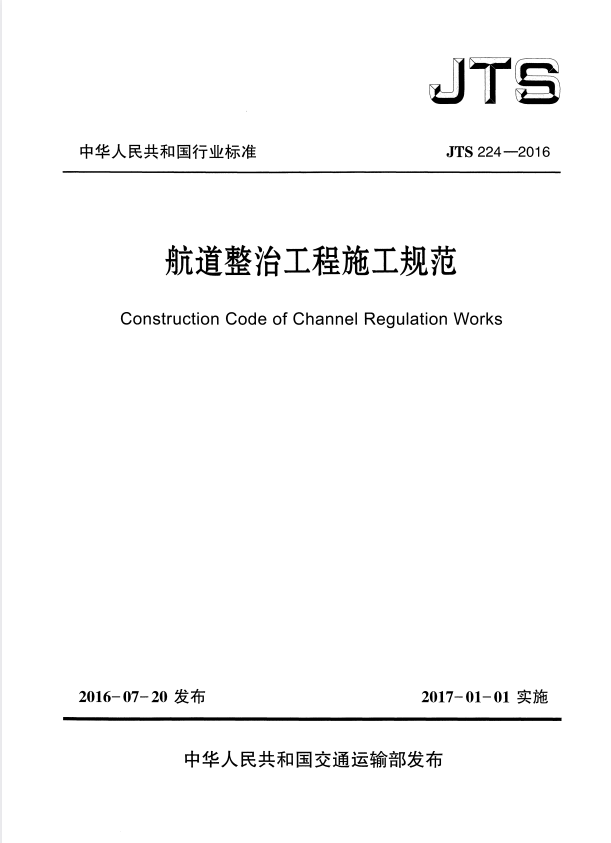 标准介绍:JTS 224-2016 航道整治工程施工规范