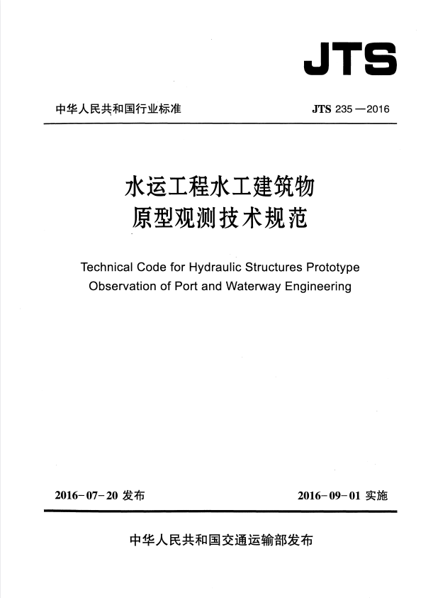 JTS 235-2016 水运工程水工建筑物原型观测技术规范.pdf