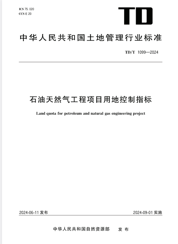 标准介绍:TD/T 1099-2024 石油天然气工程项目用地控制指标fIR免费标准库