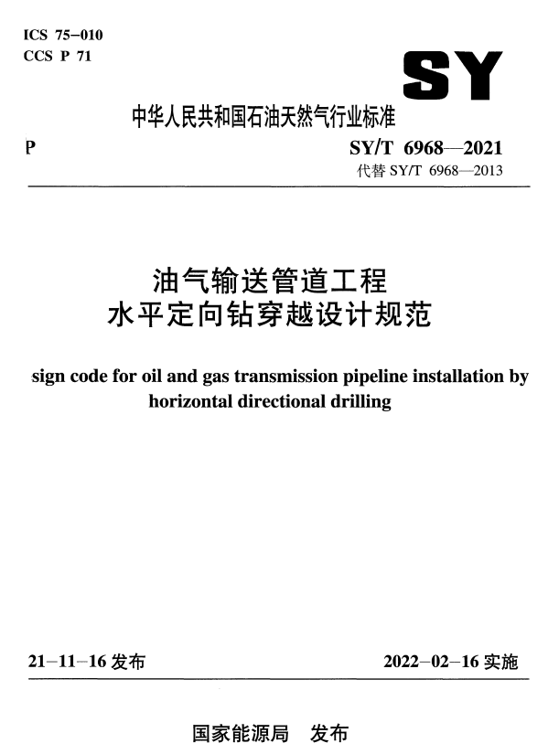 标准名称:油气输送管道工程水平定向钻穿越设计规范