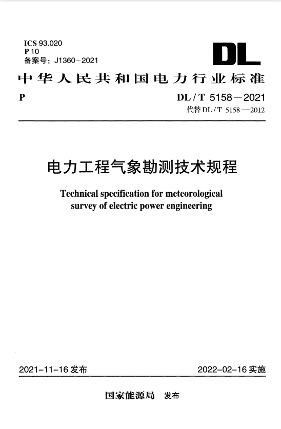 标准介绍:DL/T 5158-2021 电力工程气象勘测技术规程