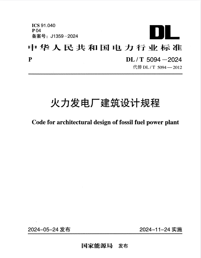 标准介绍:DL/T 5094-2024 火力发电厂建筑设计规程