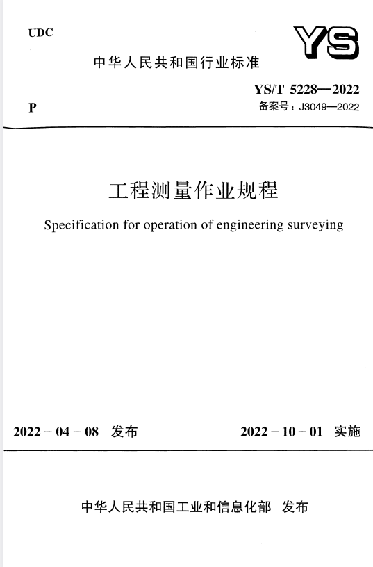 标准介绍:YS/T 5228-2022 工程测量作业规程
