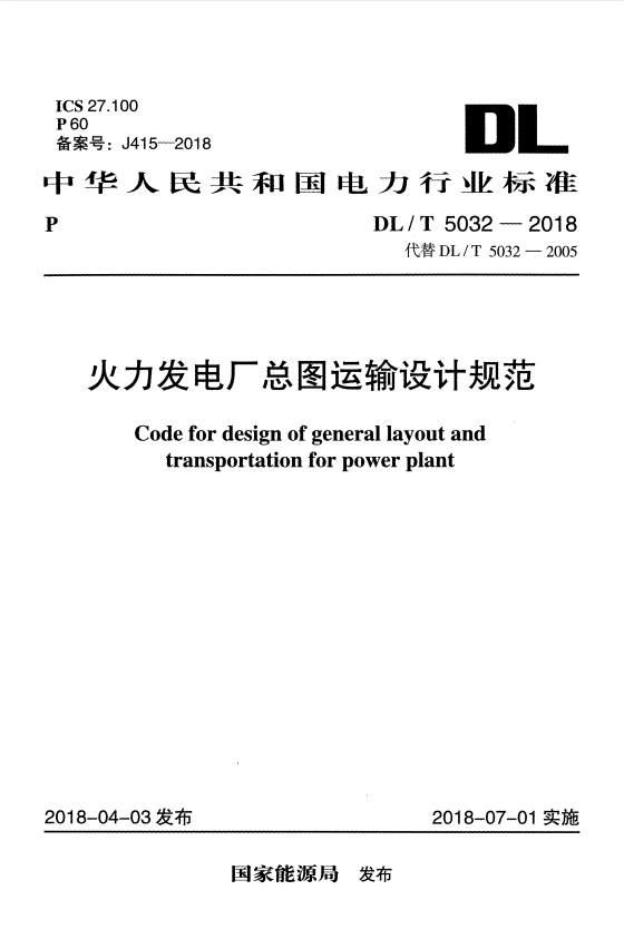 标准介绍:DL/T 5032-2018 火力发电厂总图运输设计规范