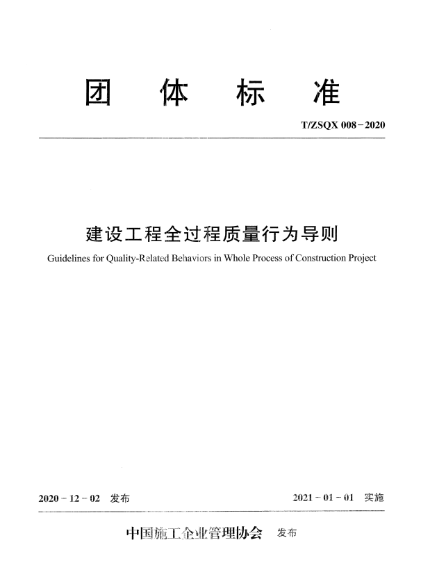 英文名称:Guidelines for Quality-Related Behaviors in Whole Process of Construction Project