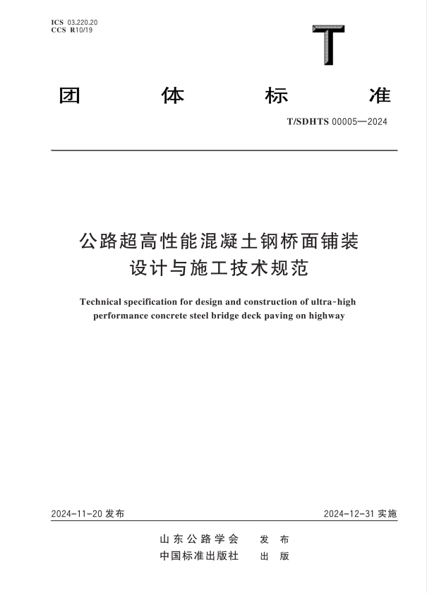 标准介绍:T/SDHTS 00005-2024 公路超高性能混凝土钢桥面铺装设计与施工技术规范