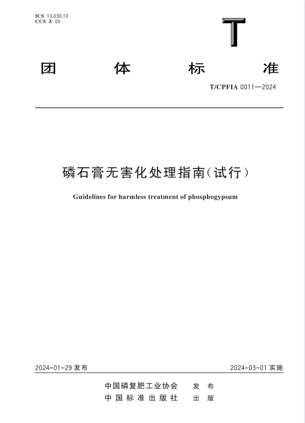 标准介绍:T/CPFIA 0011-2024 磷石膏无害化处理指南(试行)