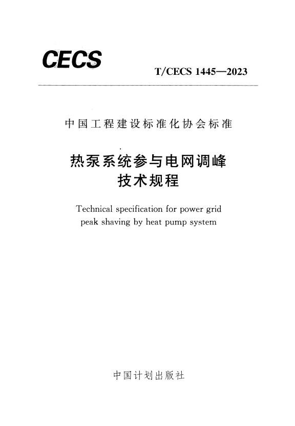 T/CECS 1445-2023 热泵系统参与电网调峰技术规程.pdf