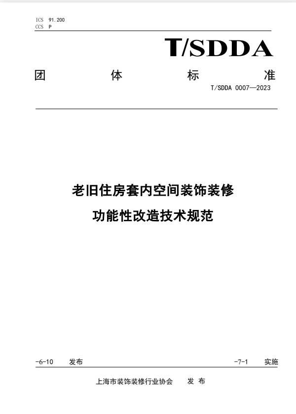 标准介绍:T/SDDA 0007-2023 老旧住房套内空间装饰装修功能性改造技术规范Kbq免费标准库