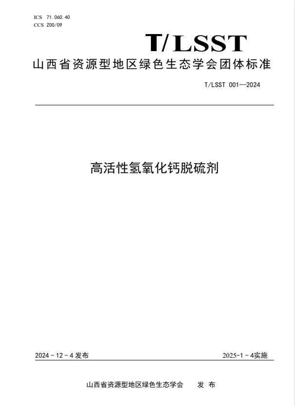 标准介绍:T/LSST 001-2024 高活性氢氧化钙脱硫剂