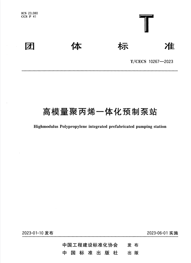 标准介绍:T/CECS 10267-2023 高模量聚丙烯一体化预制泵站Fhw免费标准库