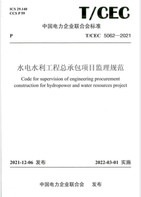标准介绍:T/CEC 5062-2021 水电水利工程总承包项目监理规范