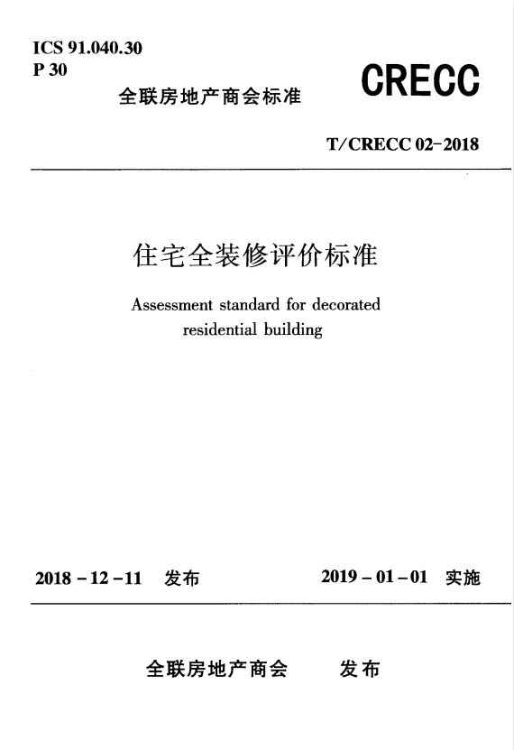 T/CRECC 02-2018 住宅全装修评价标准5XQ免费标准库