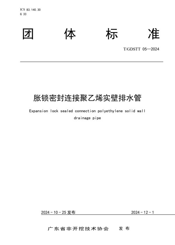 标准介绍:T/GDSTT 05-2024 胀锁密封连接聚乙烯实壁排水管2EA免费标准库